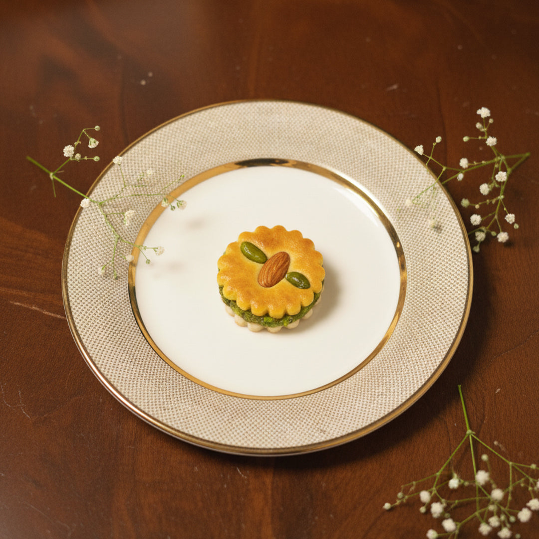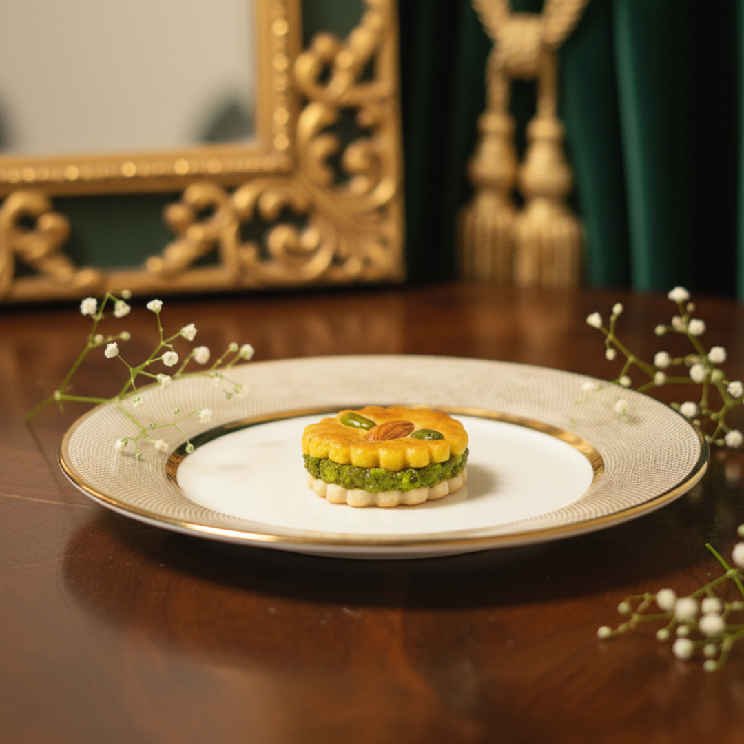 Experience layers of pure indulgence in our Badam Shonar Tabaq – a delicate badam base, rich pista filling, and a fragrant kesar-badam top. This royal treat brings together nutty crunch and melt-in-the-mouth luxury in every bite.