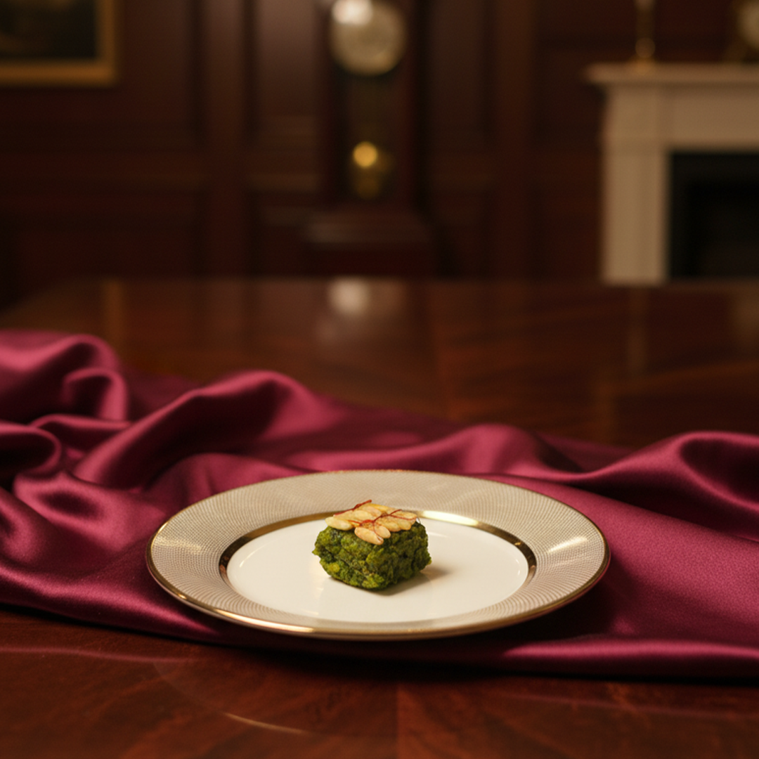 Ratna Barfi – A jewel-toned indulgence where the richness of pista meets the delicate crunch of premium chilgoza [pine nuts], finished with a saffron-kissed crown. A mithai that’s as elegant as it is unforgettable.