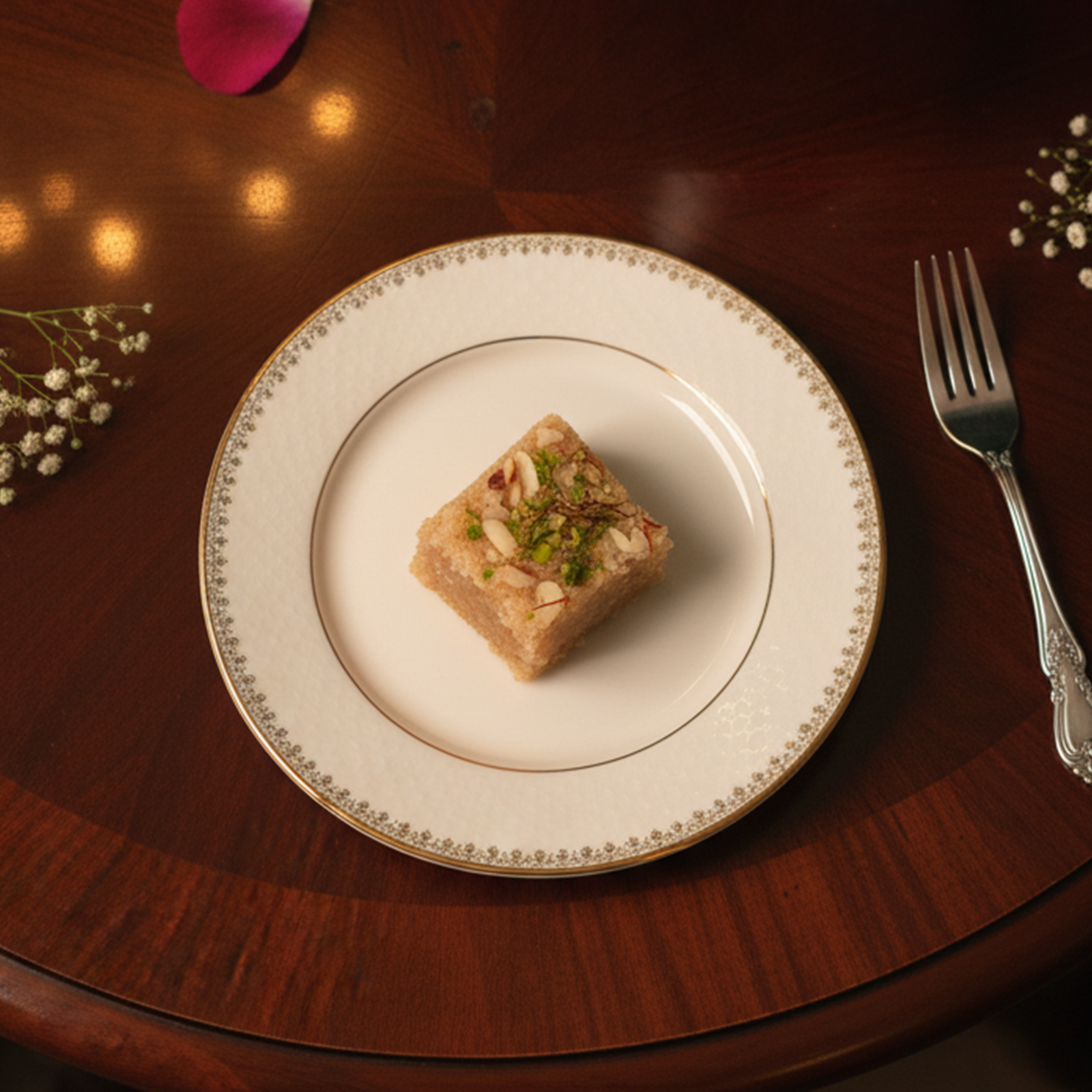 Shahi Gondh – A winter indulgence steeped in tradition. Crafted with khoya and gond, and a medley of nuts, slow-roasted in pure ghee and kissed with saffron, this mithai is as nourishing as it is decadent. A royal treat that warms the soul with every bite.